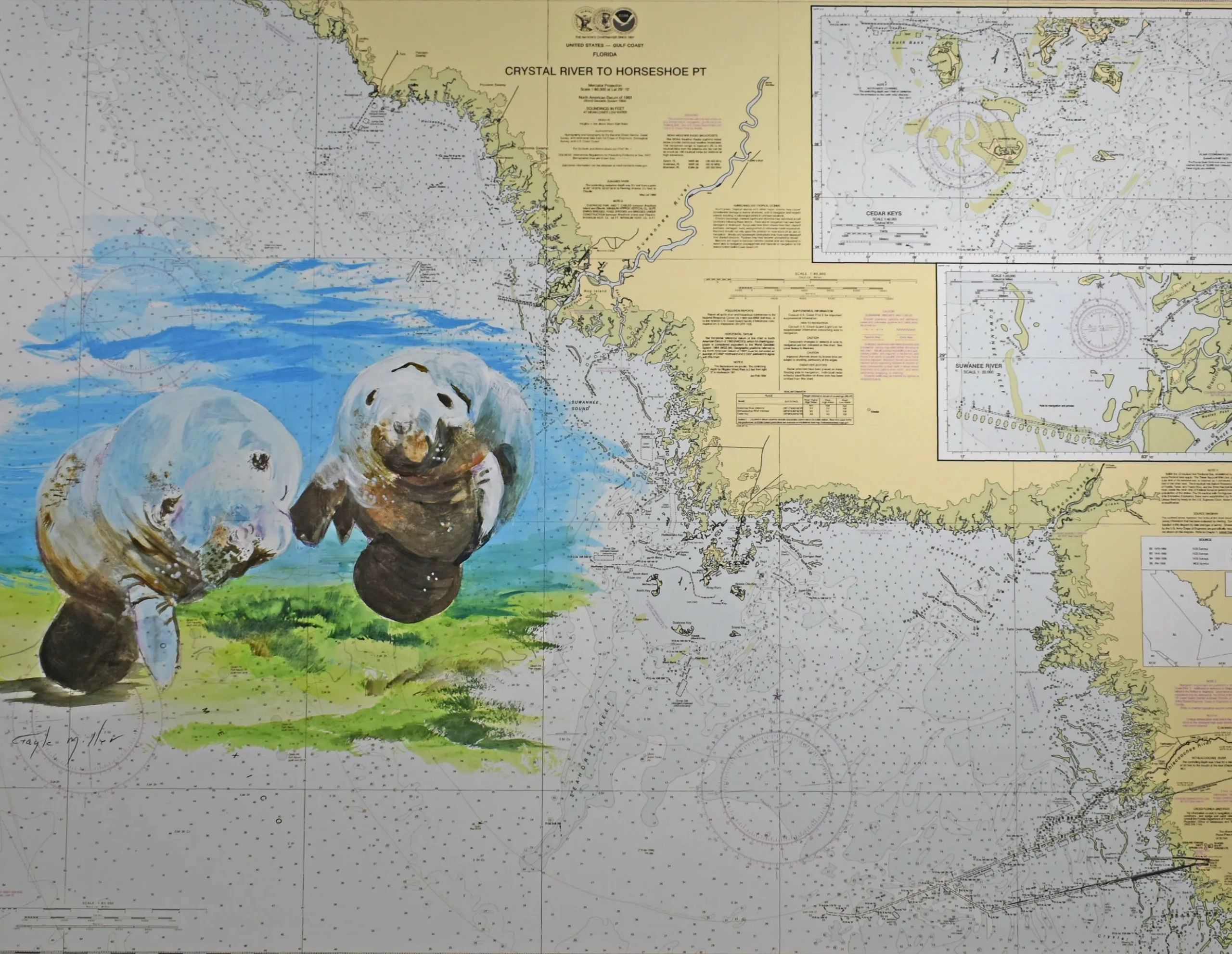 NEW 0945 — Crystal River Manatees 21 x 16 matted, framed